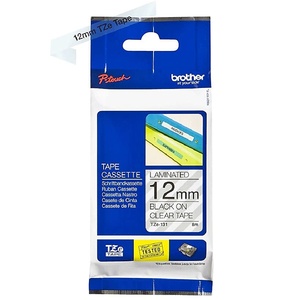 BROTHER TZE-131 12MM BLACK ON CLEAR LAMINATED TAPE