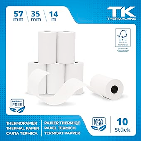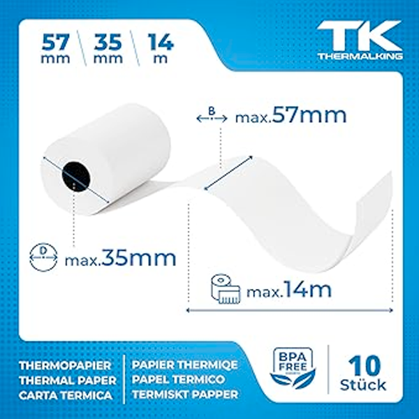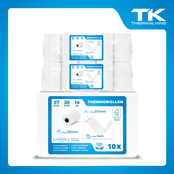 EC CASH THERMAL PAPER ROLLS, WIDTH 57 MM, DIAMETER 35 MM, SLEEVE DIAMETER 12 MM, LENGTH 25 M, 100X1