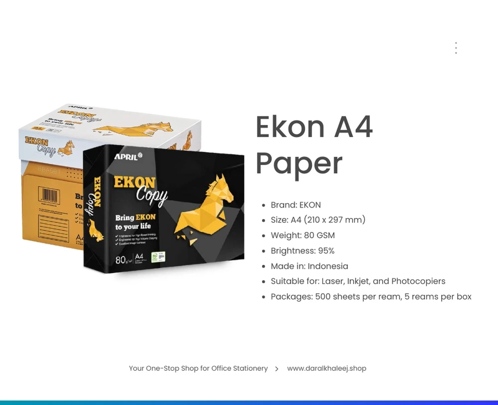 EKON Copy Paper A4, 80 GSM, 2500 Sheets, Box of 5 Reams