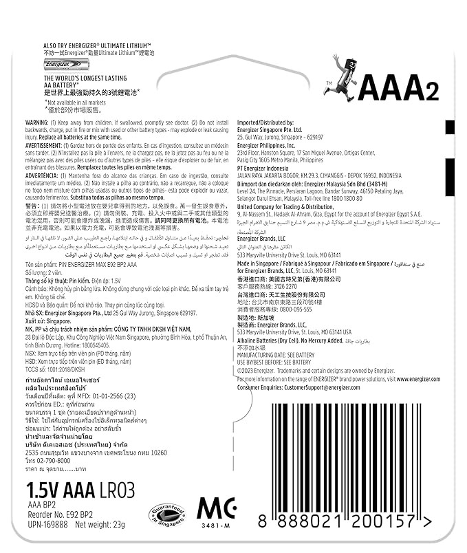 Energizer Max Alkaline AAA Batteries, Pack of 2
